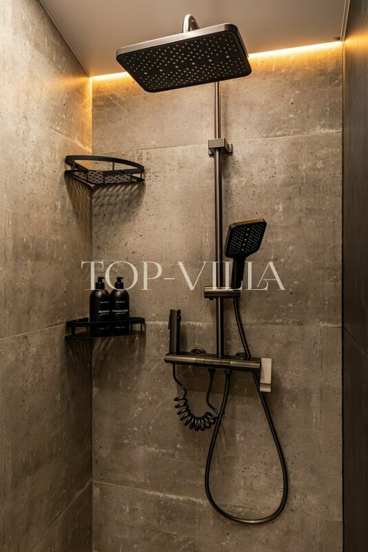 2 шикарные ванные комнаты, в одной из которых находится душевая кабина, а во второй - душевая кабина и белоснежная ванна, обе оснащены зеркалами с подогревом